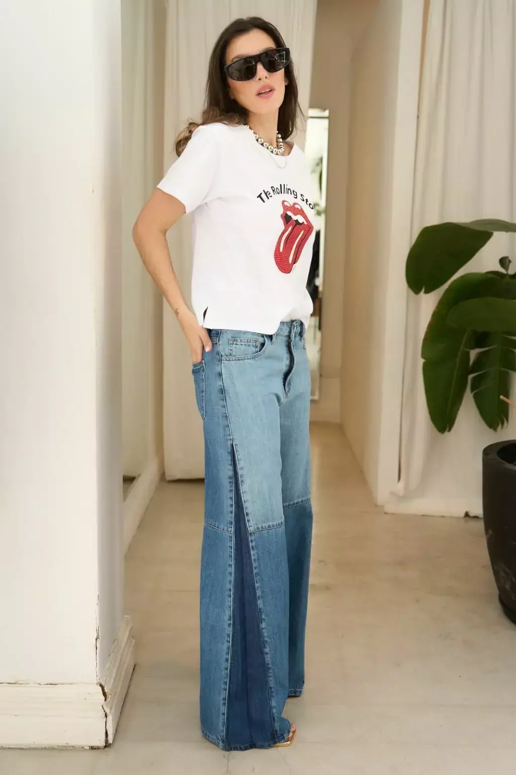 Jean Figo: Estilo y comodidad en una sola prenda. Este jean de tiro alto presenta una pierna ancha que aporta libertad de movimiento y un diseño moderno. Su recorte de distintos tonos de denim en la misma prenda crea un efecto visual único, ideal para destacar en cualquier ocasión.